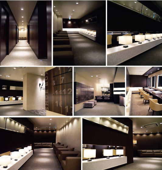 待ち合いはゆったりと配置し、素材や色を多用しない事で高級感を演出。